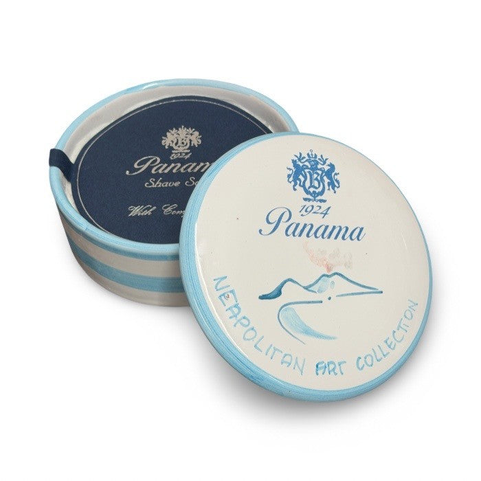 Die Boellis Panama 1924 Neapolitan Art Collection Rasierseife von Michele Boellis als Coffret wird im, an der Amalfiküste hangemachten Tongefäß, geliefert. Der Deckel des Tiegels ist mit dem "Cornetti" Motiv von Hand verziert. Die Rasierseife ist das Ergebnis von fast einem Jahrhundert Erfahrung als Barbier im familienbetriebenen Salon im Herzen von Neapel und genießt unter Kennern Weltruf. Die Seife basiert auf der reinsten Essenz der Mandel und einer traditionelle Zusammensetzung natürlicher Inhaltsstoffe, wie sie schon im 19. Jahrhundert in den Salons verwendet wurde. Es handelt sich um eine talgbasierte Seifenmischung, die besonders rückfettend wirkt. Sie versprüht den einzigartigen Mandelduft im janzen Raum, hat eine erfrischende und reinigende Wirkung, macht die Haut geschmeidig und verleiht Ihr Spannkraft.