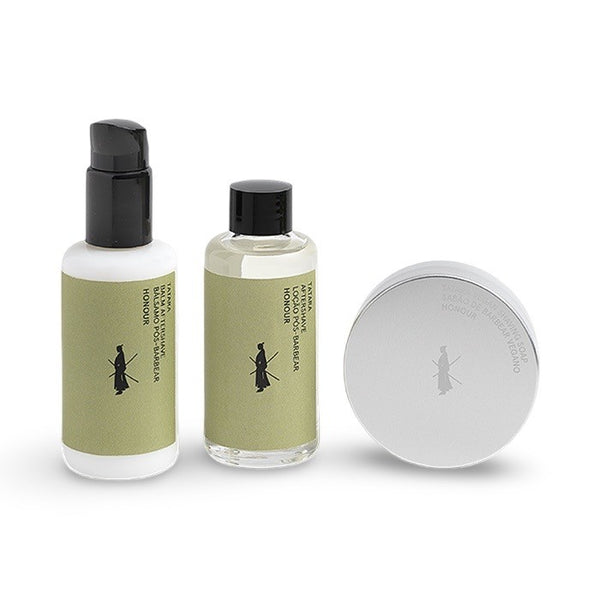 Der TATARA Honour Aftershave Balm ist besonders für empfindliche Haut entwickelt worden. Es verspricht selbst die empfindlichste Haut erfrischt und geschmeidig zu pflegen. Angereichert mit wohltuender Hamamelis, die die Haut beruhigt und Rötungen reduziert, schützt dieser Balsam vor Irritationen und sorgt für ein angenehmes Rasurerlebnis. Zusätzlich enthält die Formel feuchtigkeitsspeicherndes Glycerin, pflegende Jojoba- und Brokkolisamenöle für eine tiefe Feuchtigkeitsversorgung, ohne die Poren zu verstopfen, und Coco Caprylate für ein seidiges, nicht fettendes Finish. Ein außergewöhnliches Erlebnis für alle Hauttypen. Das gesamte Set, bestehend aus Rasierseife, Aftershave Splash und Balsam, rundet deine Rasurroutine vor und nach der Rasur auf höchstem Niveau ab.
