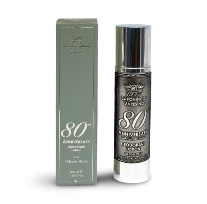 Das Saponificio Varesino 80th Anniversary Deodorant im 100ml Flakon mit Zerstäuber ist ein Multitalent auf natürlicher und pflegender Basis. Die Deo-Formulierung auf Basis von Steinalaun schafft durch seine salzhaltige Komponente eine sehr unangenehme Umgebung für die Bakterien, die für unangenehme Gerüche zur Verantwortung gezogen werden müssen. Das Deo beinhaltet stark feuchtigkeitsspendendes und beruhigendes vulkanische Meerwasser. Es entstammt einer Reise, die hunderttausende Jahre andauert und wird durch das Vulkangestein der Insel Jeju gefiltert. Es hat antioxidative Eigenschaften und hält Temperatur und PH-Wert konstant. Der Zusatz ausgewählter Pflanzenextrakte, wie z.B. Wasabi Extrakt, Aloe Vera Gel, Hafer und Salbei, machen dieses Deo besonders leistungsstark und einzigartig in seiner Art.